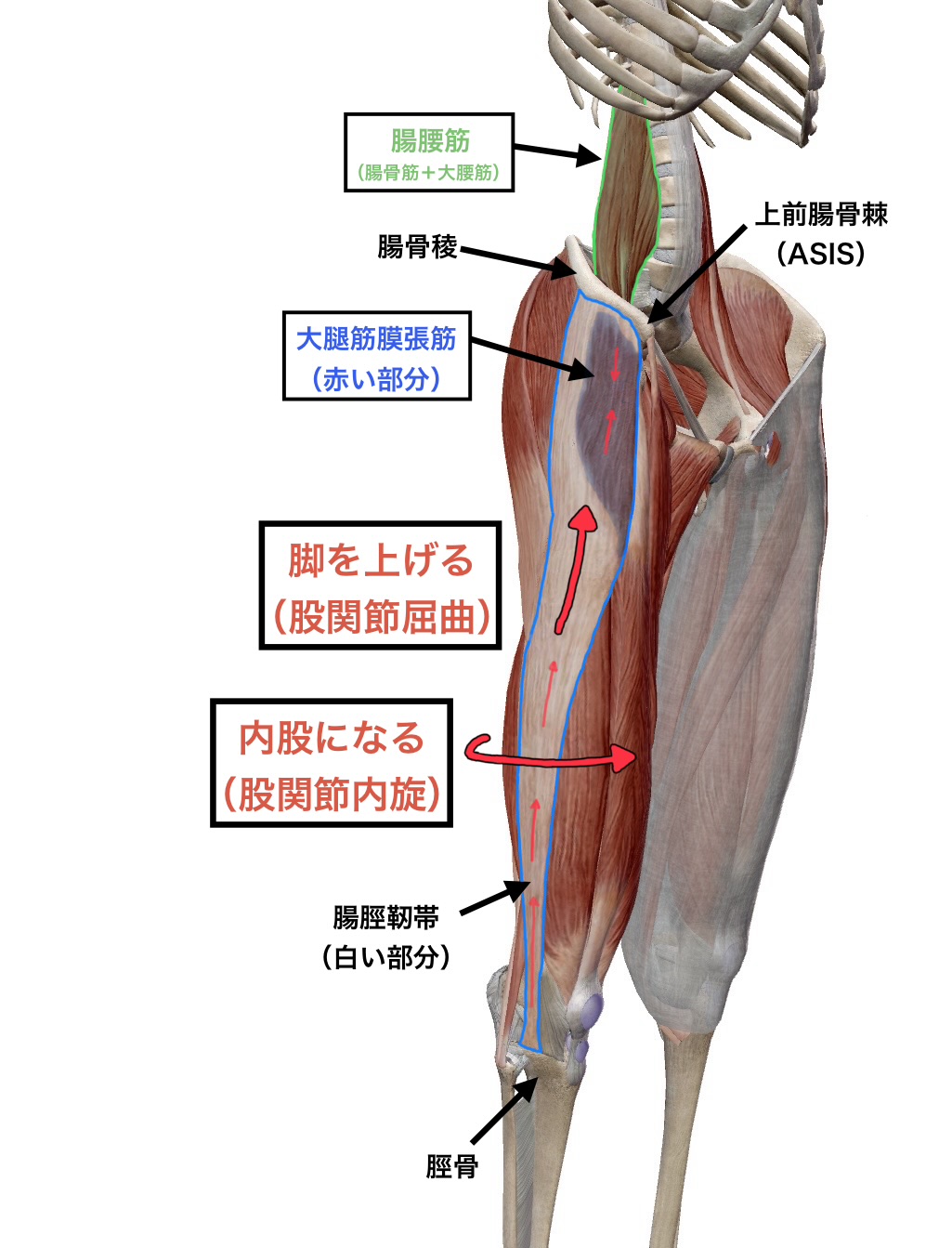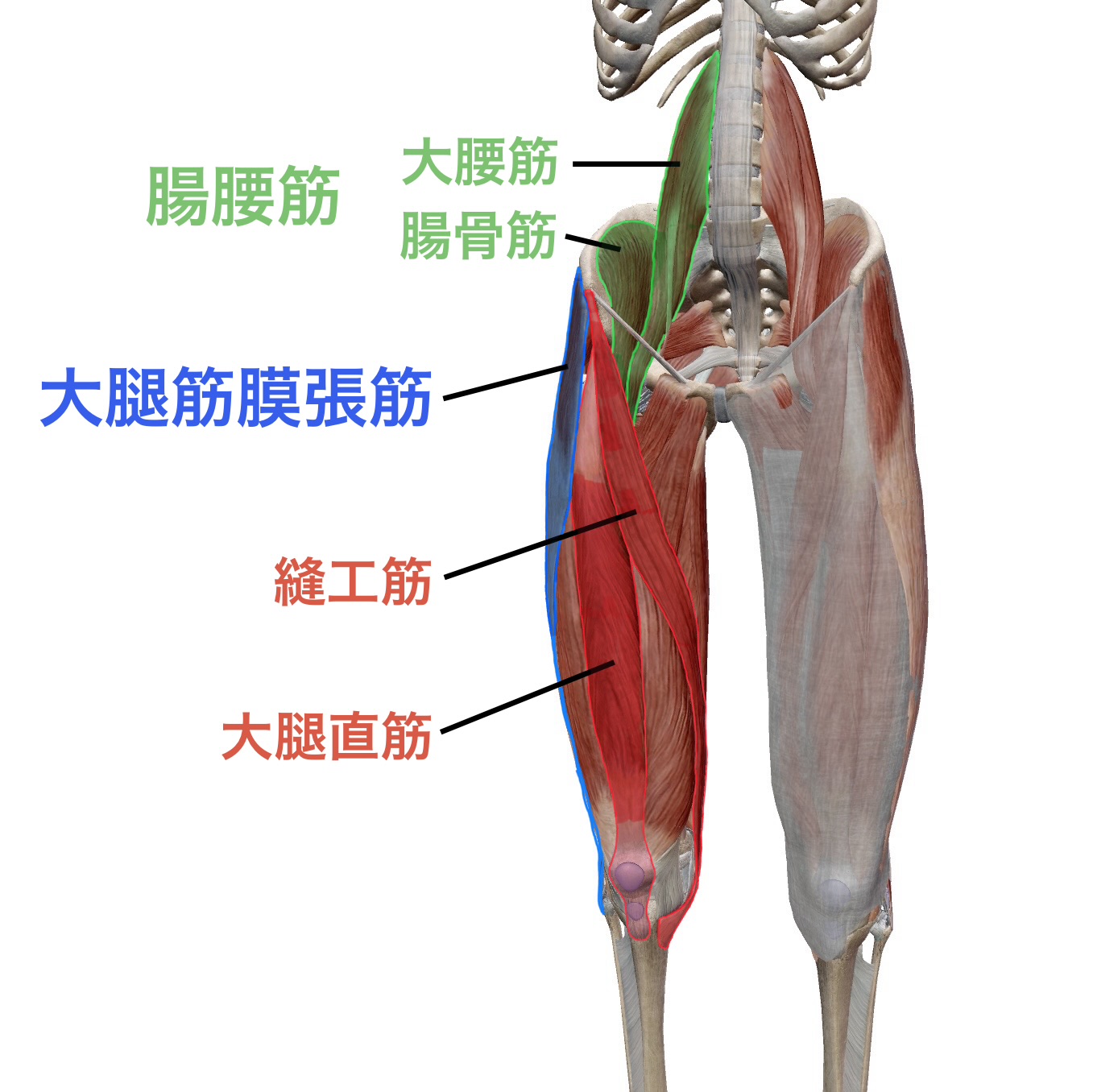 今回はその中でも「大腿筋膜張筋」と「腸腰筋」の2つの筋肉に注目して話をしていきます。