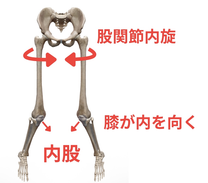 内股(= 膝が内を向く = 股関節が内回りに回旋する = 股関節内旋)になると